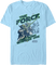 This Star Wars t-shirt features images of Yoda wielding his lightsaber. The shirt reads The Force Is Strong With This One.