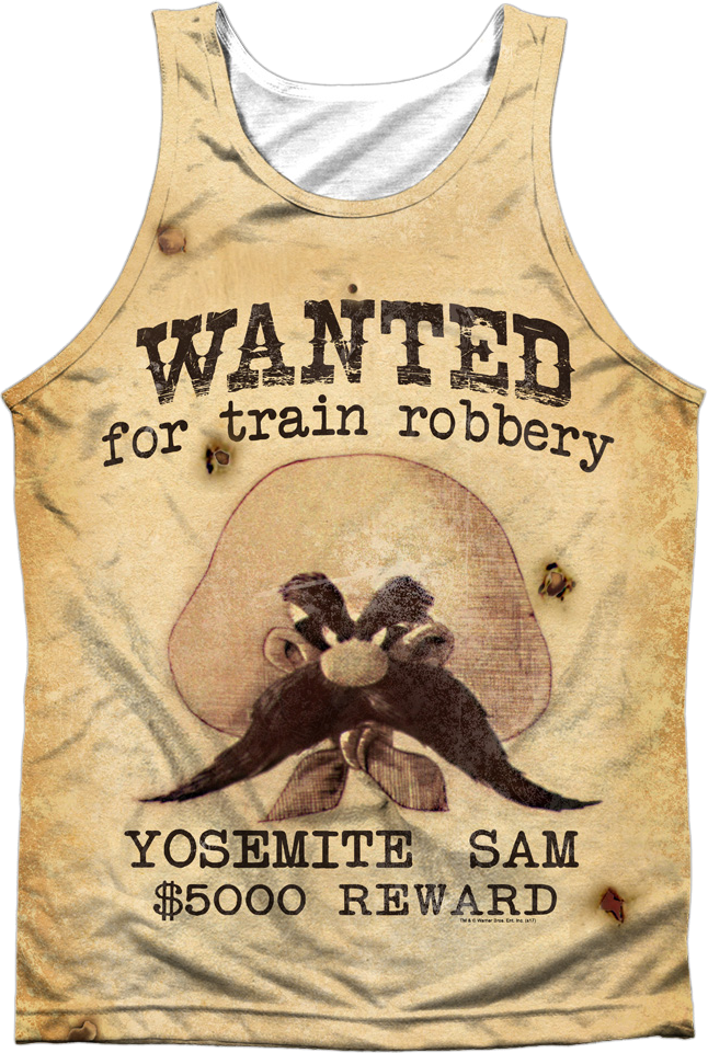Let all those lily-livered, bowlegged varmints know that you're the fastest gun west of the Pacos with this Yosemite Sam Wanted For Train Robbery Looney Tunes Tank Top!