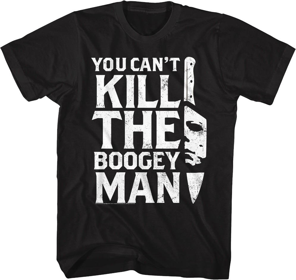 For any fan of John Carpenter's terrifying 1978 classic, this You Can't Kill The Boogeyman Knife Halloween T-Shirt is a must have!