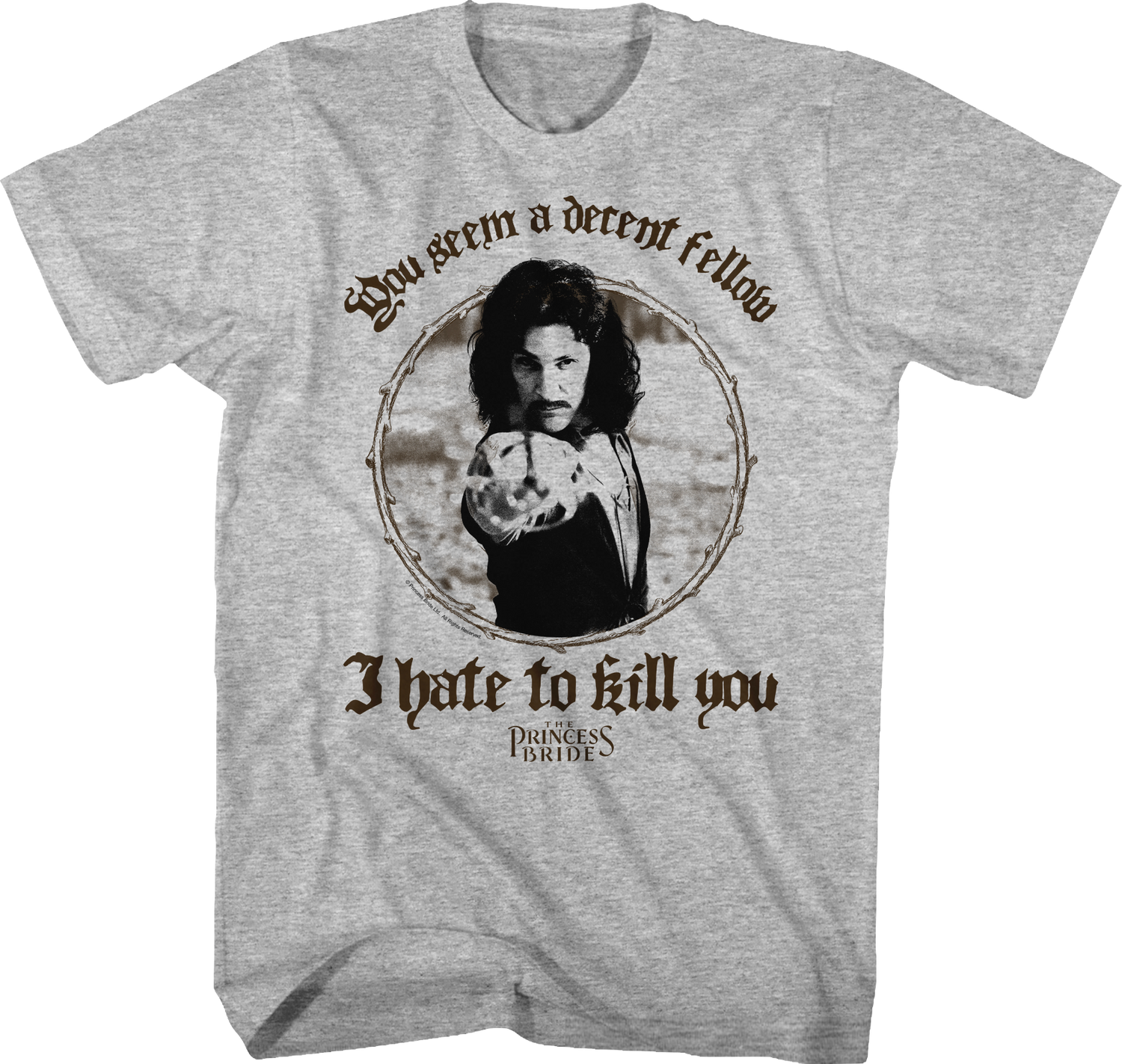 Let everyone know that you are a fan of the Spanish swordsman Inigo Montoya with this You Seem A Decent Fellow Princess Bride t-shirt!