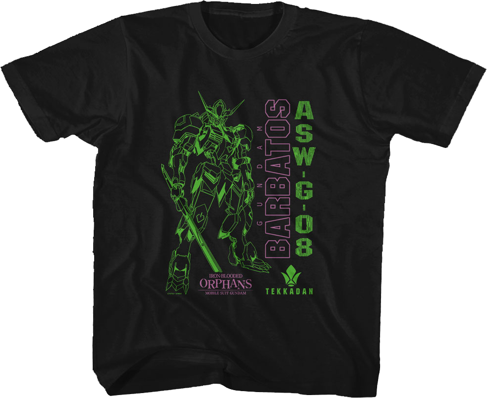 For any young fan of the mobile suit with weapons that include mace, a long sword, and a gauntlet, this Youth Barbatos Gundam Shirt is a must have!