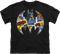 This youth Batman shirt features a collage of images from Batman comic books inside the iconic shape of the Bat Signal.