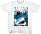 This youth Jaws shirt a cartoon great white shark emerging from the water in front of Quint's Orca fishing boat.