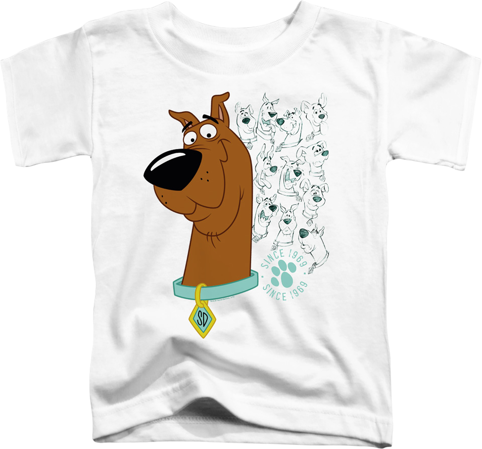 For over 50 years, Scooby and the Mystery, Inc. gang have been entertaining young and old alike with their mystery-solving antics. For any young fan, this Youth Evolution Of Scooby-Doo Shirt is a must have!