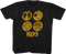 This youth KISS shirt features sketches of iconic face paint worn by band members Gene Simmons, Paul Stanley, Ace Frehley, and Peter Criss. The band is famous for its makeup designs, each of which represents a different character. Gene Simmons is "The Demon", Paul Stanley is "The Starchild", Ace Frehley is "The Spaceman", and Peter Criss is "The Catman". The band is also known for their unforgettable hits that include "Rock And Roll All Nite", "Detroit Rock City", "Creatures Of The Night" and "Shout It Out Loud".