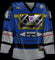 This hockey jersey is designed to look and feel just like a real team jersey. The front of the jersey features an image of Soundwave transformed into a mini cassette player. The jersey includes the blue, yellow, red, black and gray colors that appear on Soundwave when he is in robot mode.