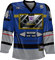 This hockey jersey is designed to look and feel just like a real team jersey. The front of the jersey features an image of Soundwave transformed into a mini cassette player. The jersey includes the blue, yellow, red, black and gray colors that appear on Soundwave when he is in robot mode.