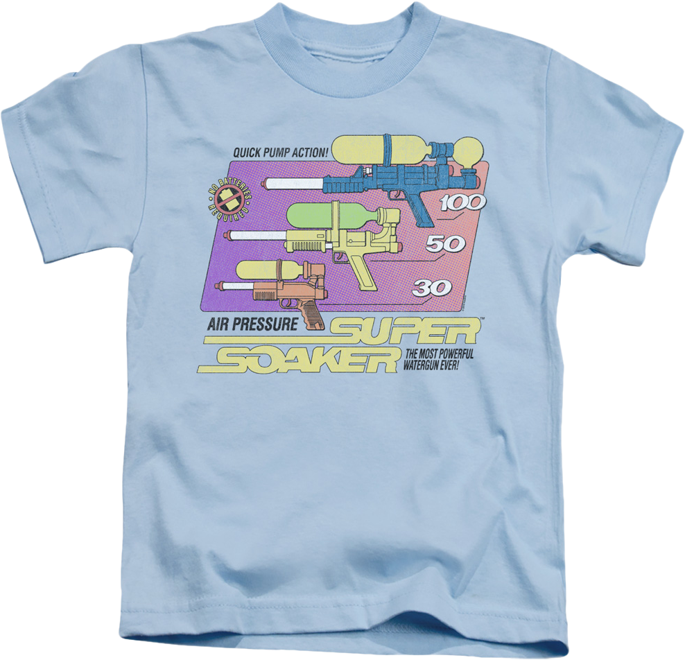 With more than $1 billion in sales, the Super Soaker is the most popular watergun of all time. Everyone will immediately know that you are a fan when you wear this Youth Super Soaker Shirt!
