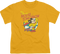This Youth The Mouse of Tomorrow Mighty Mouse Shirt shows the pint-sized hero saluting with clouds and a wedge of cheese in the background. He's pictured with his red and yellow costume and his nickname, "The Mouse of Tomorrow." The heroic rodent has superpowers including flight, super strength, and invulnerability that he uses to battle evil felines and other enemies.