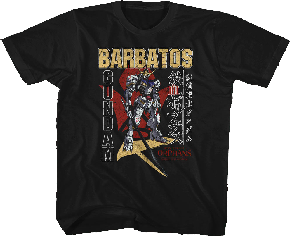 For any young fan of the mobile suit with weapons that include mace, a long sword, and a gauntlet, this Youth Vintage Barbatos Gundam Shirt is a must have!