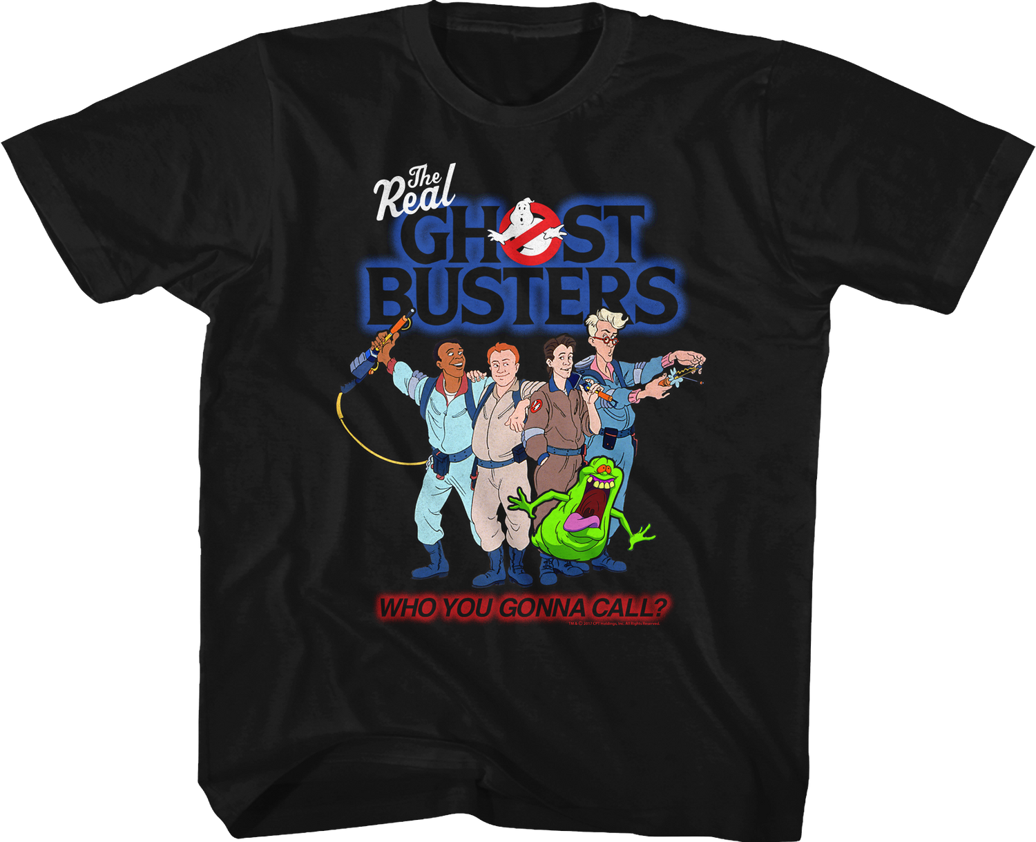 This Real Ghostbusters shirt features Winston Zeddemore, Ray Stantz, Peter Venkman and Egon Spengler. The shirt shows the famous Ghostbusters question, Who You Gonna Call?