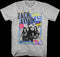 This Zack Attack t-shirt shows band members Kelly Kapowski, Zack Morris, Screech Powers, A. C. Slater, Lisa Turtle, Jessie Spano. Jessie was not originally a member of Zack Attack, which probably explains the band's fall from grace after their initial success.