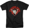 This Betty Boop t-shirt shows the iconic cartoon character as a zombie posing inside of a bloody heart. The shirt reads Zombie Love.